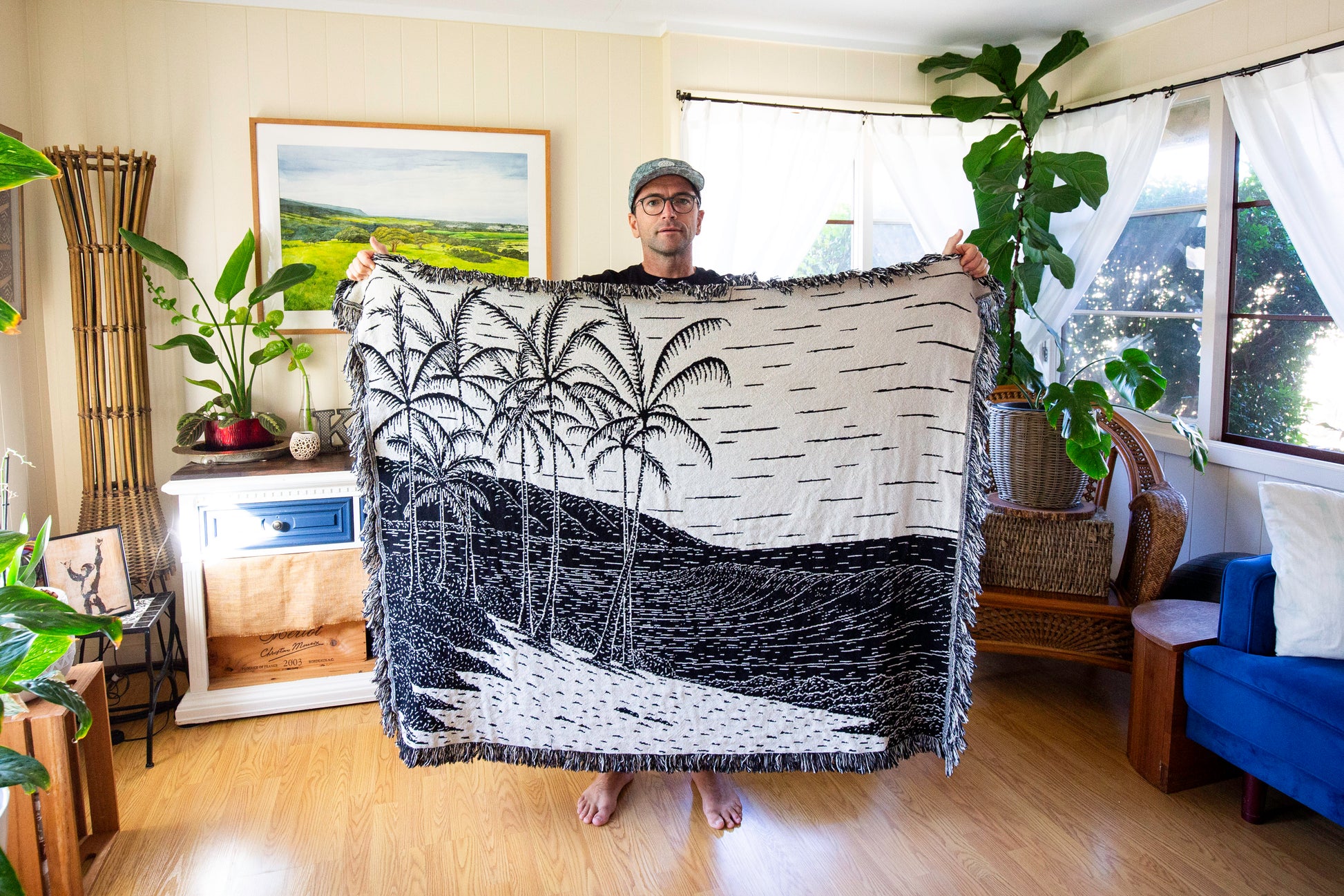 柔らかくて心地よいので、ご自宅のインテリアにハワイの「ピース」を加えるのに最適です。ソファやベッドのスローブランケットとして、壁掛け、床カバー、ピクニックブランケットとして使用できます。この丁寧に作られた機能的な芸術作品の可能性は無限大です。