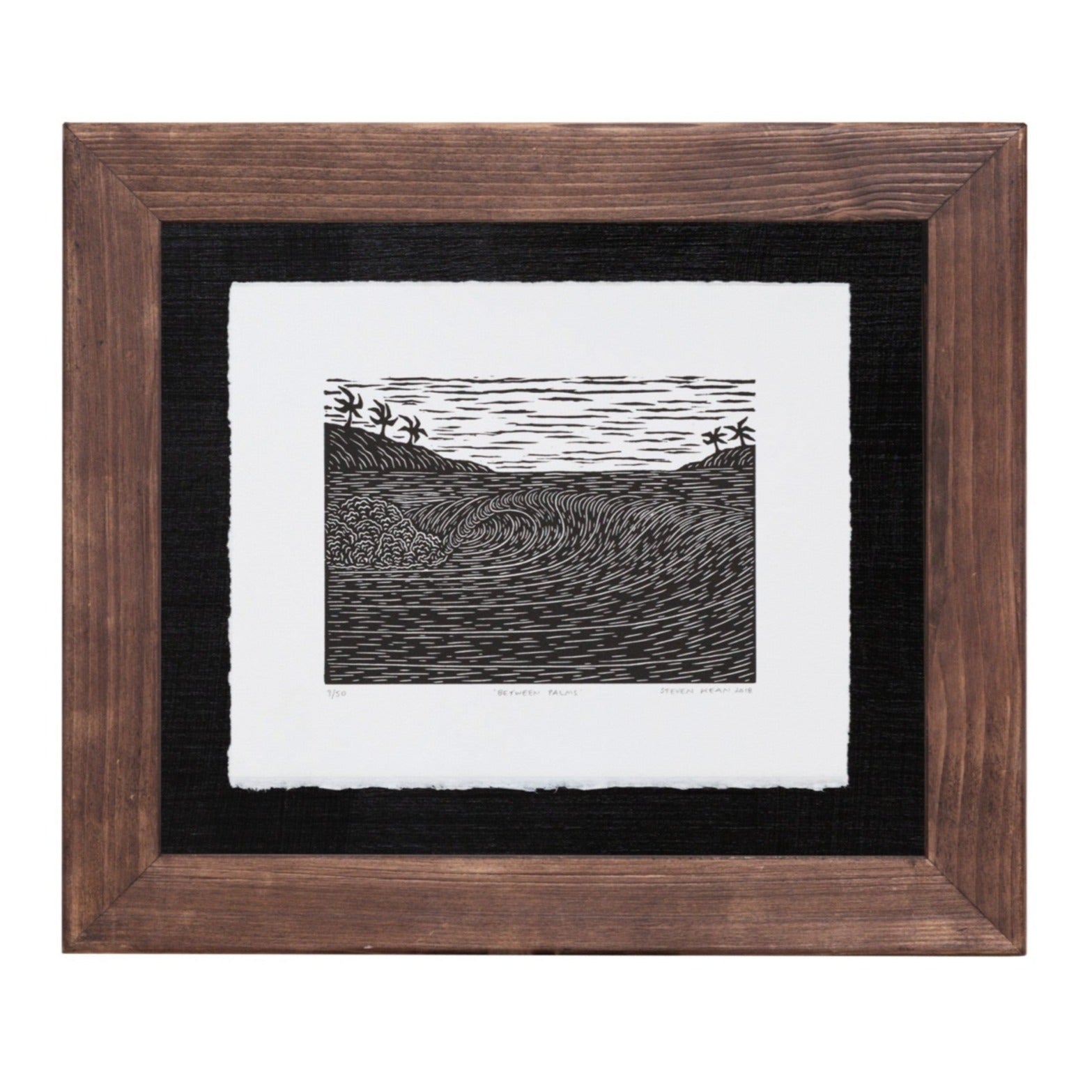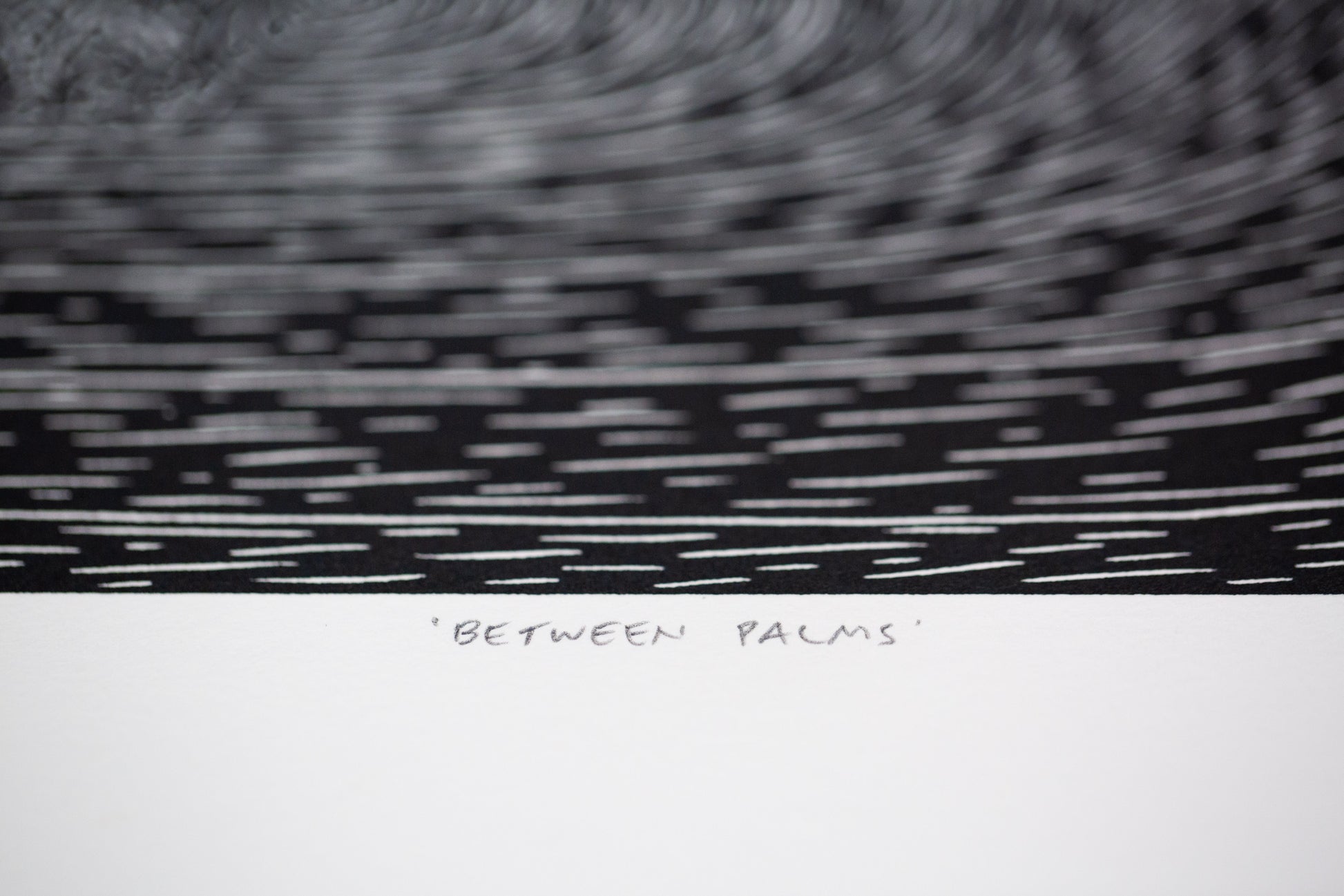 オリジナル リノカット プリント - 「Between Palms」 (額入り)