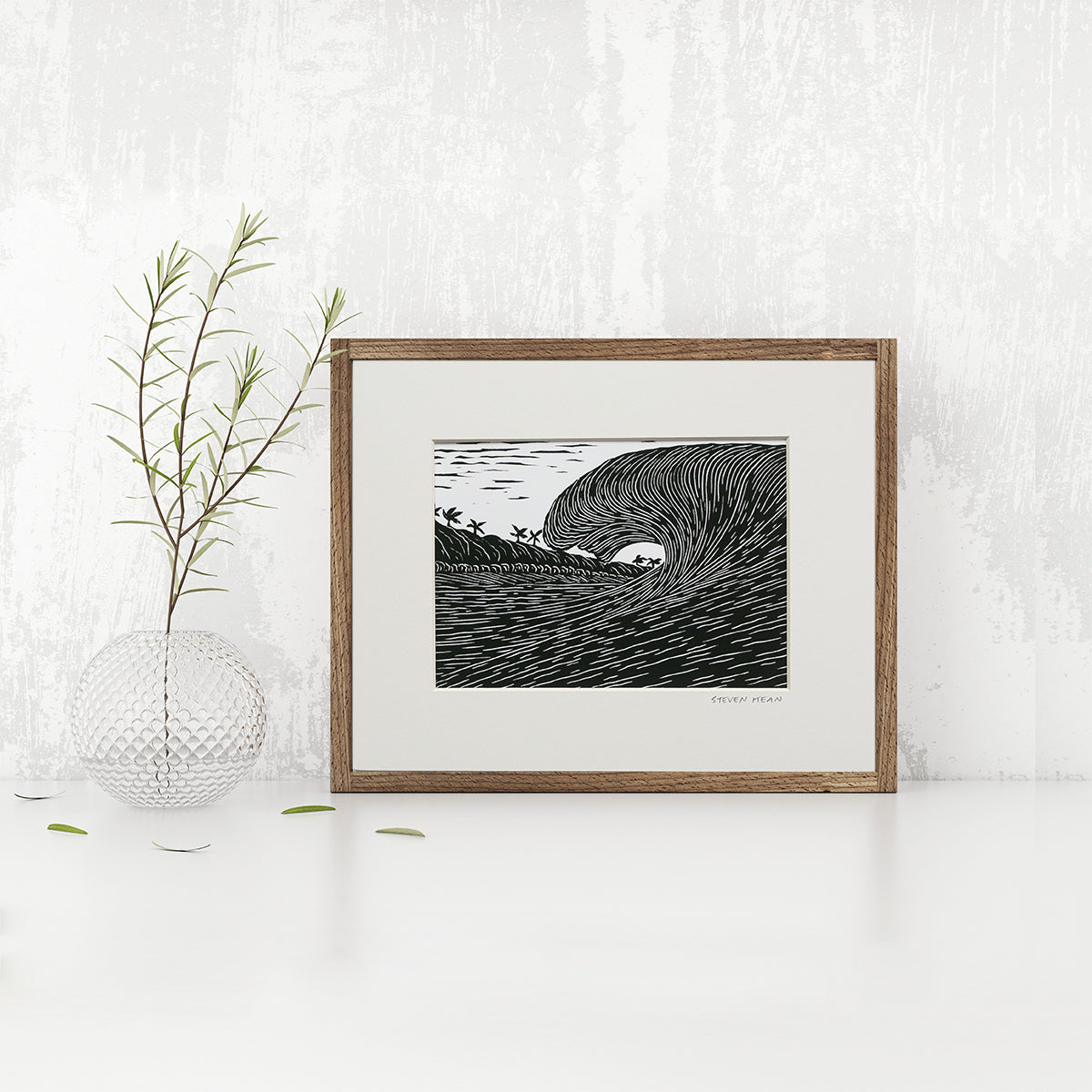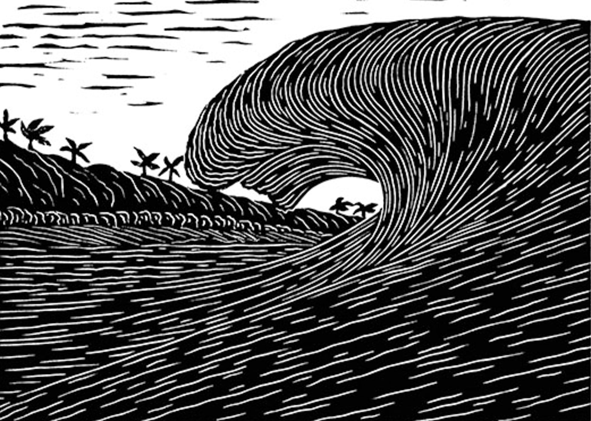 The title is a buoy reading. The image is Kean's take on what the Banzai Pipeline would look like at that reading.