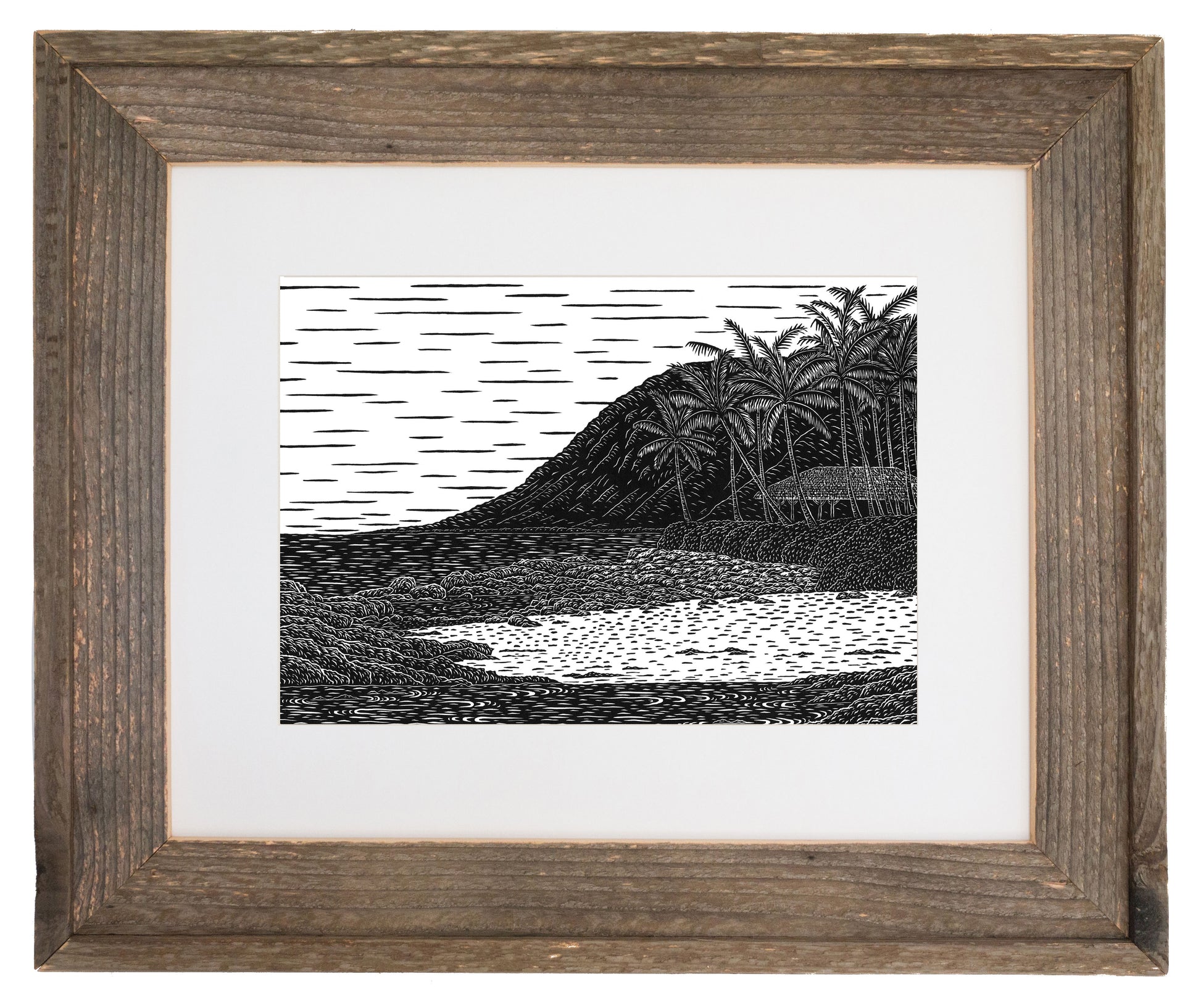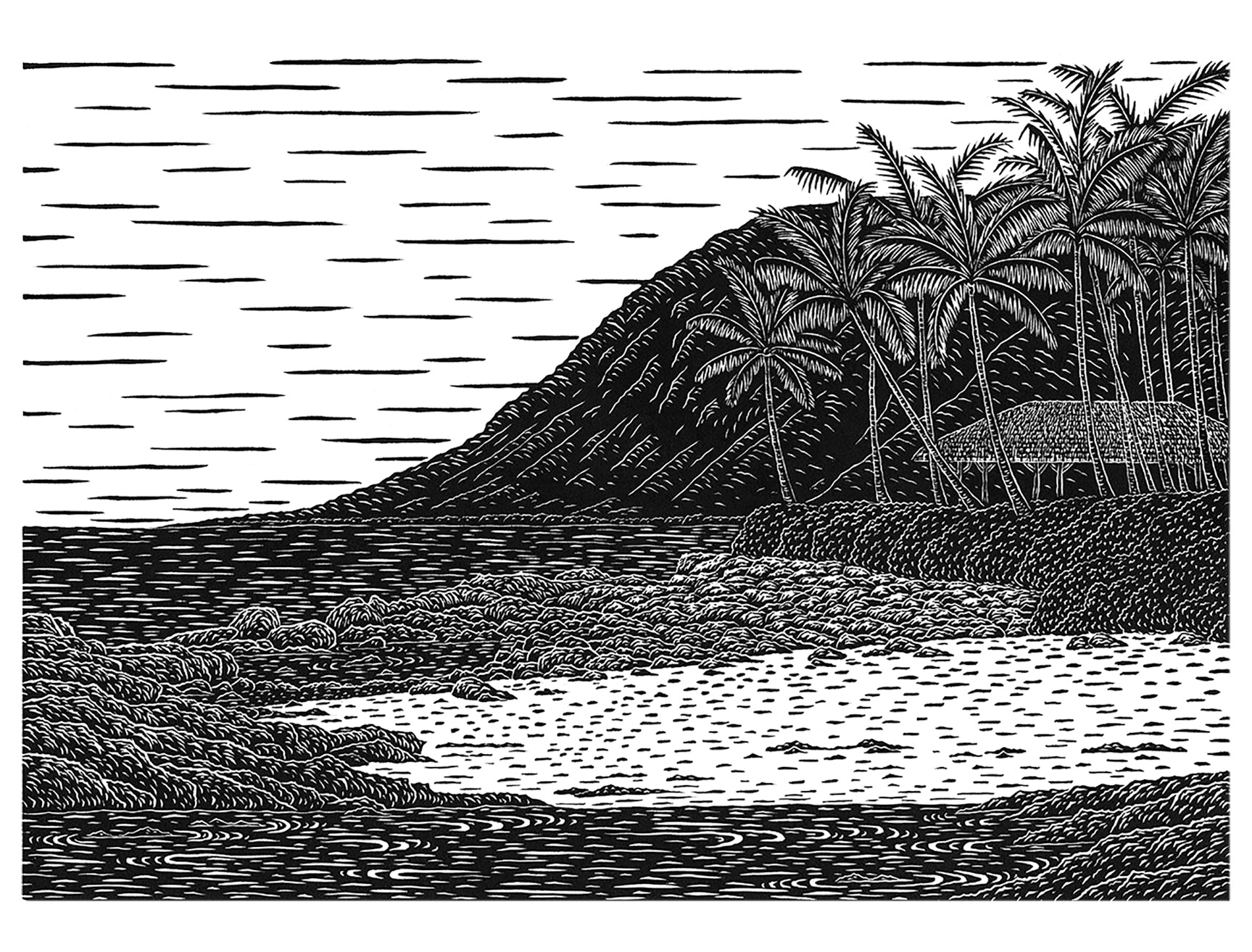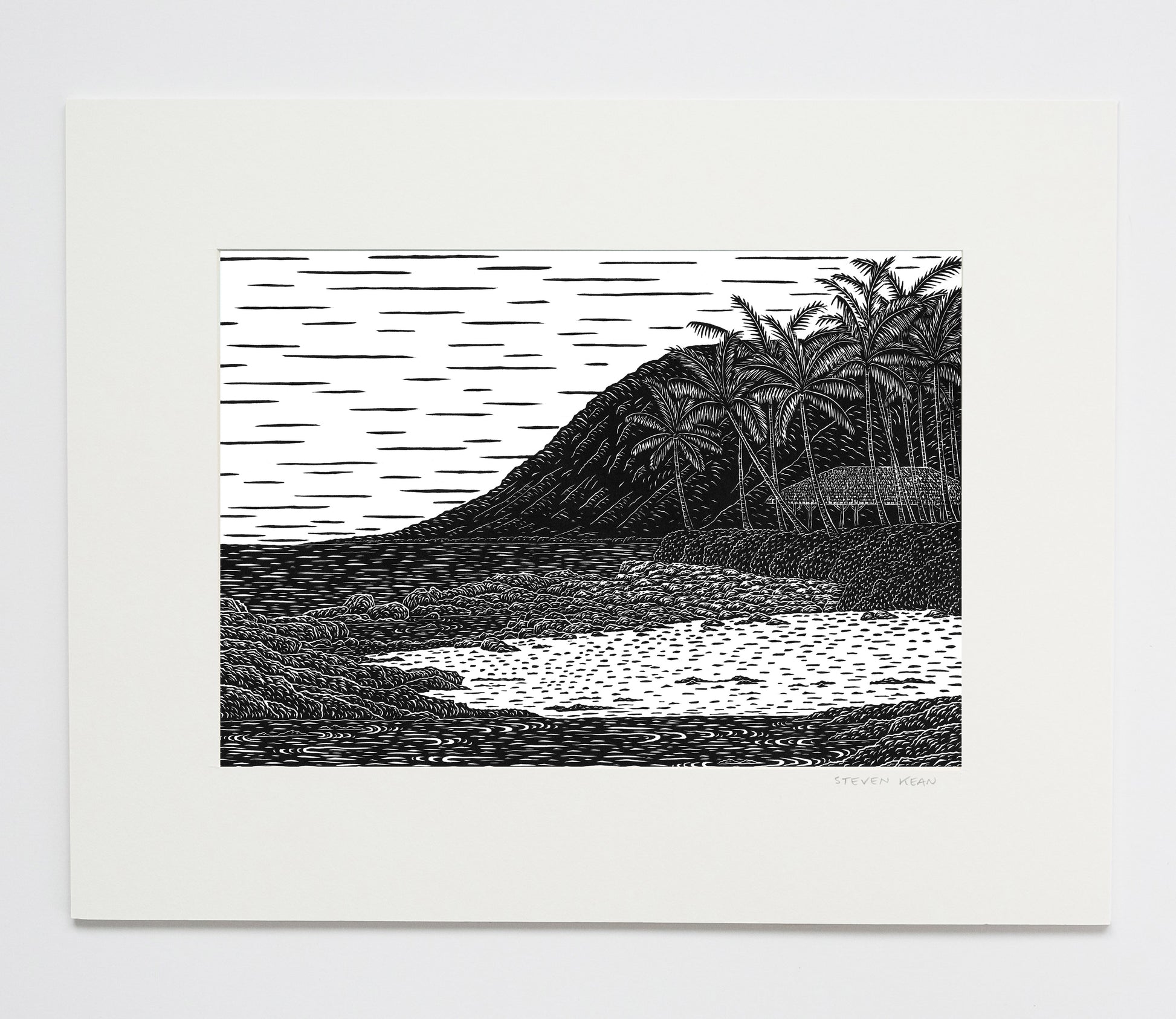 In this piece Kean depicts a coastal scene within Ko Olina, Oahu called ‘Lanikūhonua.’ In the Hawaiian language it translates to ‘Where Heaven Meets the Earth’ and is a name given by Kamokila Cambell describing this breathtaking view.