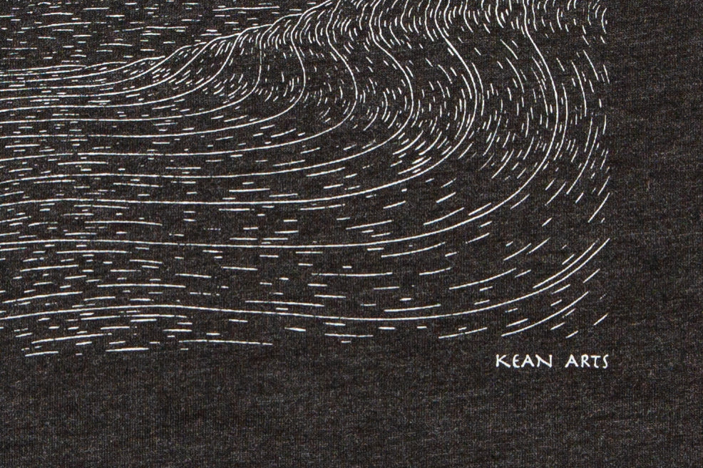 Cozy, comfortable and stylish. Cool grey image screen printed on an incredibly soft, tag-less, vintage black tee. Pinted in Hawaii with aloha.