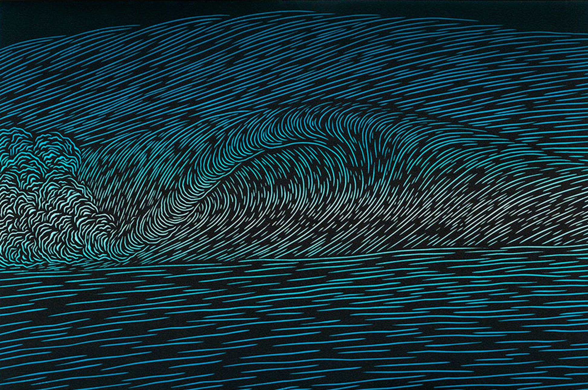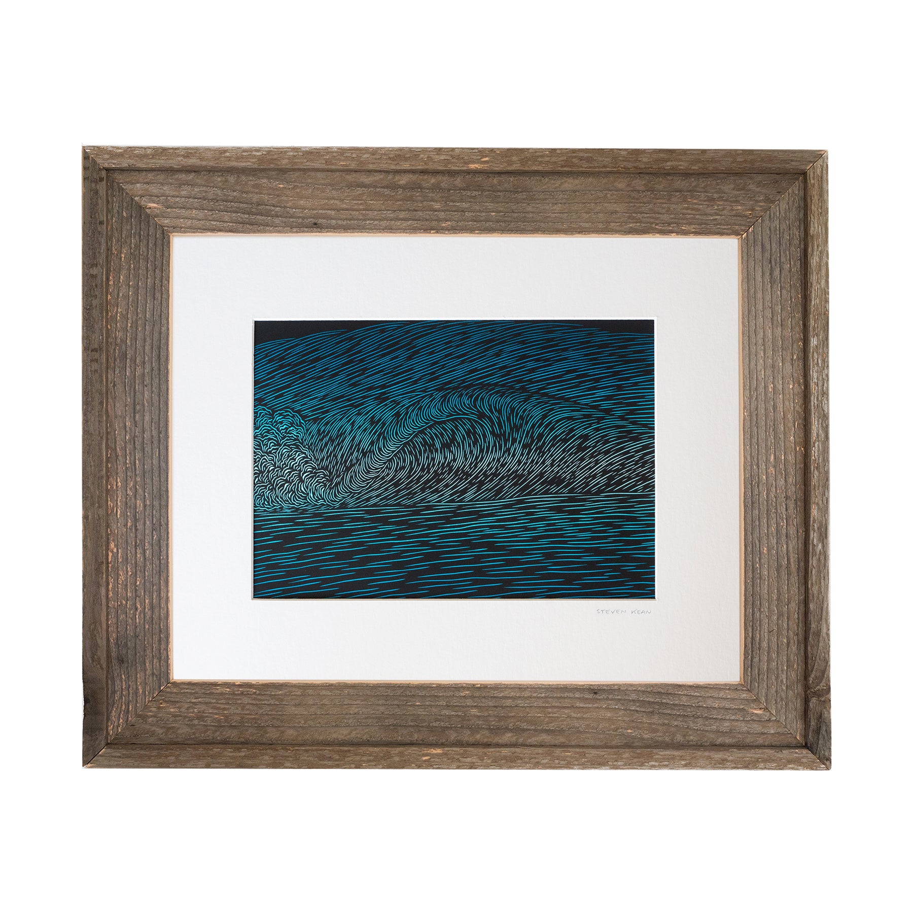 In this print, Kean utilizes two methods of printmaking in one piece - woodcut and a color blend monoprint. The original woodblock print measures 22” x 30”.