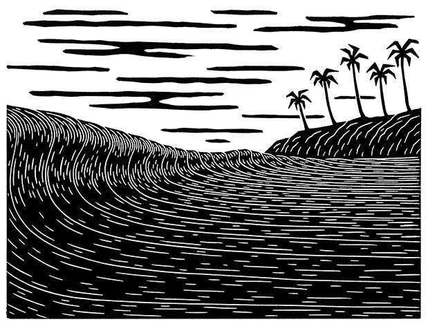 Here Kean depicts a rolling wave that has yet to break. There’s something very calming about wathcing waves roll to shore. The fluid motion and way they refract as they hug the coastline is an absolute thing of beauty.